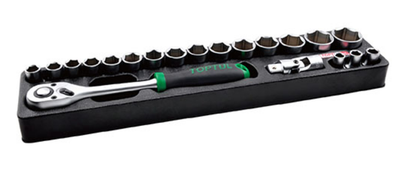 TOPTUL GM-2023 20PCS 1/2" DR. Flank Socket Set (12PT) (20 pcs, 1/2'', 12PT) | EMIN.COM.LA