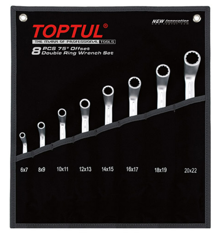 TOPTUL GPAI0802 75° Offset Double Ring Wrench Set (8 pcs) | EMIN.COM.LA