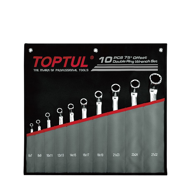 TOPTUL GPCI1001 75° Offset Double Ring Wrench Set (10 pcs) | EMIN.COM.LA