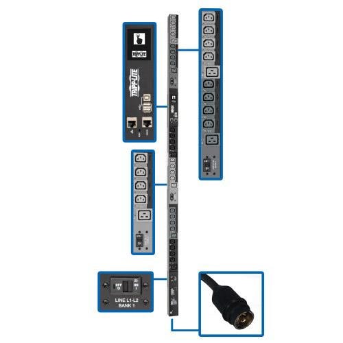 Tripp Lite PDU3EVNR6L2130 ສາຍປະຕູຈອງພະລັງງານ Tripp Lite PDU 3-ຟເຟສມີການກວດສອບ 24 C13 6 C19 208/240V L21-30P 10kW 0U TAA | EMIN.COM.LA