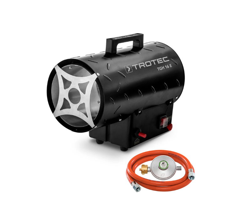 Standard scope of delivery: gas heater fan, pressure reducer, and gas line