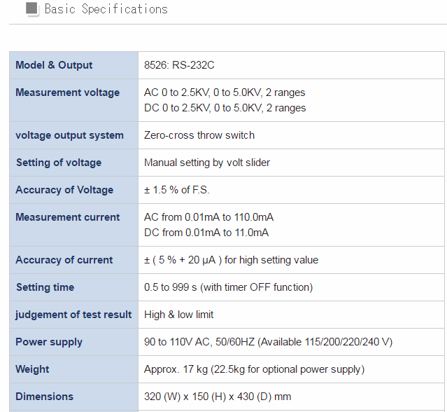 Measurement voltage AC 0 to 2.5KV, 0 to 5.0KV, 2 ranges