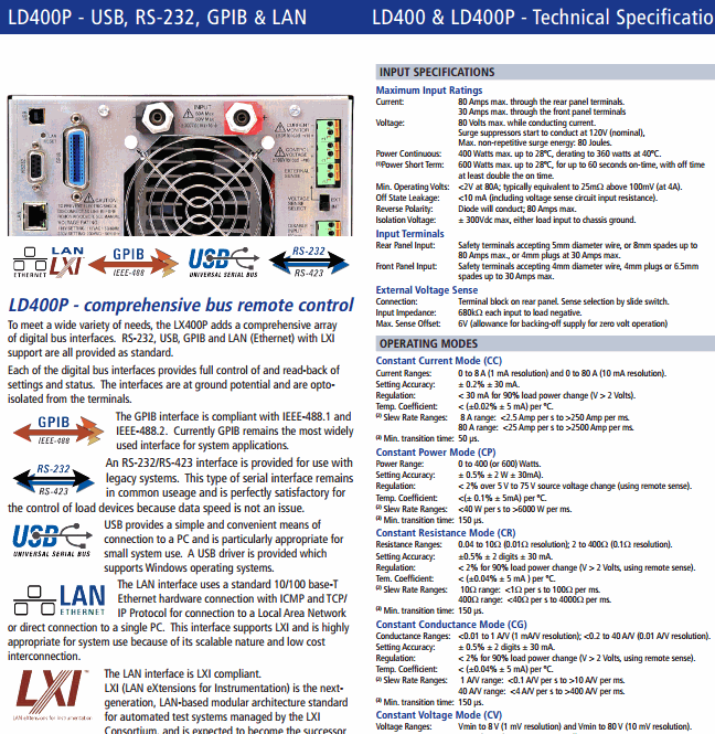 Tem. Coefficient: < (±0.04% ± 5 mA ) per ºC. (2) Slew Rate Ranges: 10W range: <1w per="" s="" to="" 100w="" per="" ms="" br=""> 400W range: <40w per="" s="" to="" 4000w="" per="" ms="" 3="" min="" transition="" time:="" 150="" s="" br=""> Constant Conductance Mode (CG)