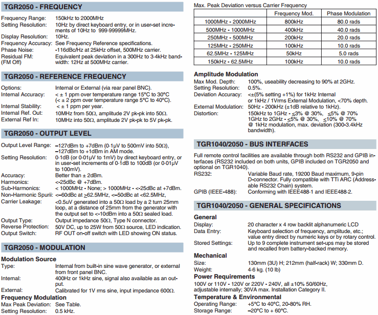 Deviation Accuracy: <±10% ±0.05rads for 1kHz Internal