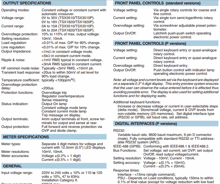 TTI TSX3510P Bench DC Power Supply (0~35V, 0~10A, 350W, RS232/GPIB) | EMIN.COM.LA