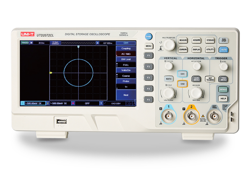 Auto measurements: Max, Min, High, Low, Ampl, Pk-Pk, Middle, Mean, CycMean, RMS, C ycRMS, Period, Freq, Rise, Fall, RiseDelay, FallDelay, +Width, -Width, +Duty, -Duty,(UTD2052/25CL)FRR, FRF, FFR, FFF, LRF, LRR, LFR, LFF, Area, CycArea, OverSht, PreSht, Phase, 34 parameters in total