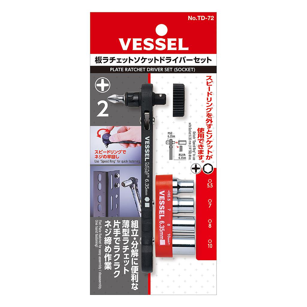 Vessel TD-72 Flat Plate Ratchet Screwdriver Set (+2, 4 sockets) | EMIN.COM.LA