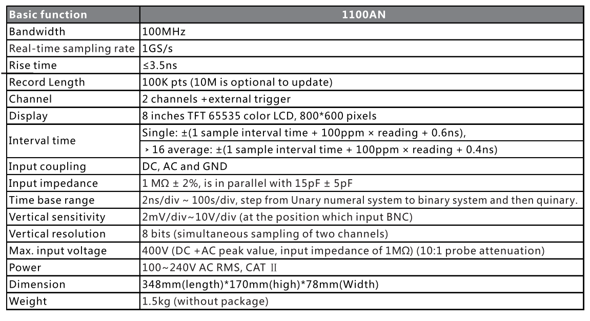 VICTOR 1100AN Digital Auto Oscilloscope (100 MHz, 1GS/s, 2 Ch) | EMIN.COM.LA