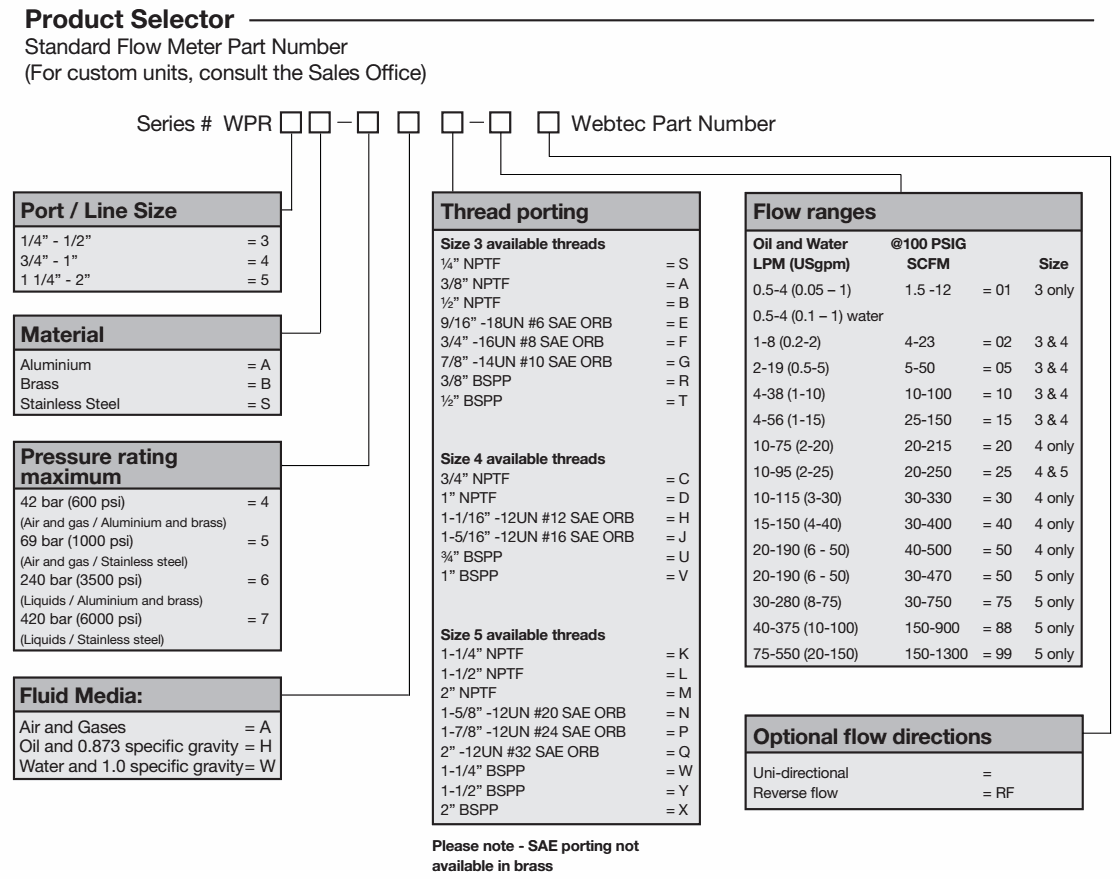 Flow measuring range: Hydraulic: 0.2 - 560 lpm (0.05 - 150 US gpm), Pneumatic: 1.5 - 1300 SCFM