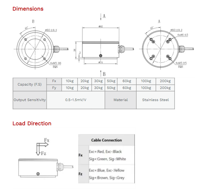 XJCSENSOR X-2A-A-D82-H38 2 Axis Load Cell (10kg~200kg) | EMIN.COM.LA
