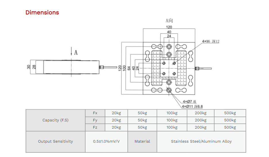 XJCSENSOR X-3A-F120 3 Axis Load Cell (20 Kg) | EMIN.COM.LA