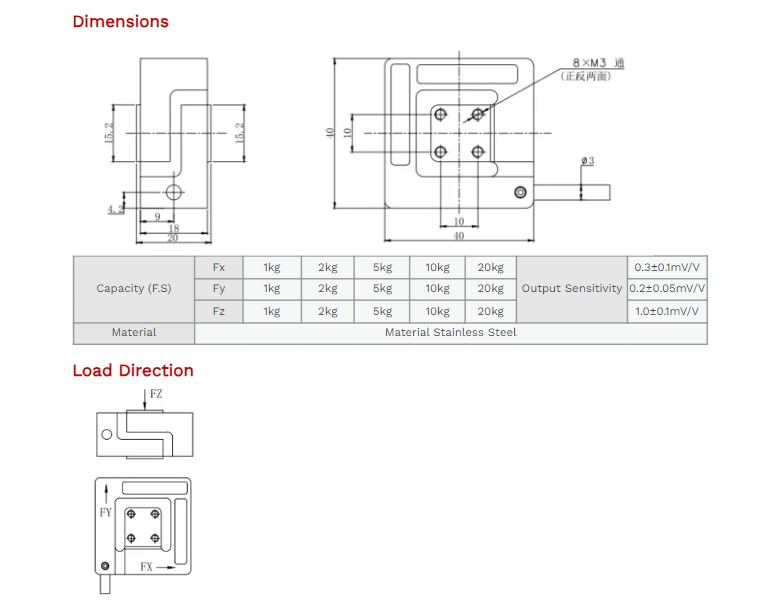 XJCSENSOR X-3A-F40-C 3 Axis Load Cell (1~20 Kg) | EMIN.COM.LA