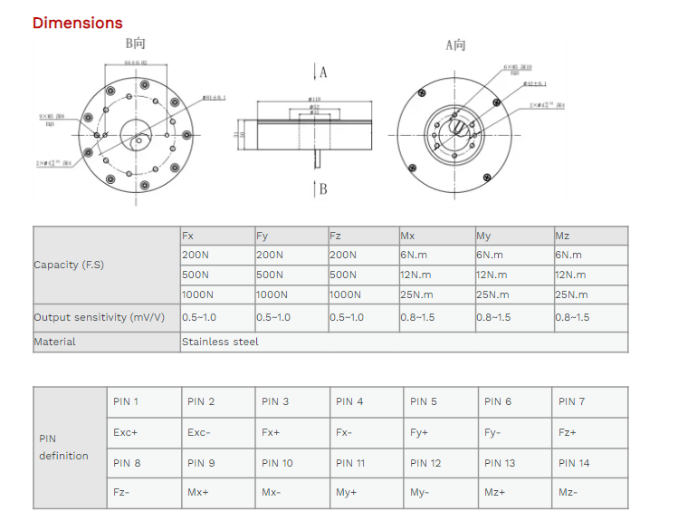 XJCSENSOR X-6A-D118-H31-B 6 Axis Force/torque Sensor (200N~1000N) | EMIN.COM.LA