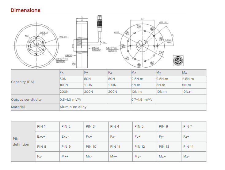 XJCSENSOR X-6A-D118-H31 6 Axis Force/torque Sensor (50N~200N) | EMIN.COM.LA