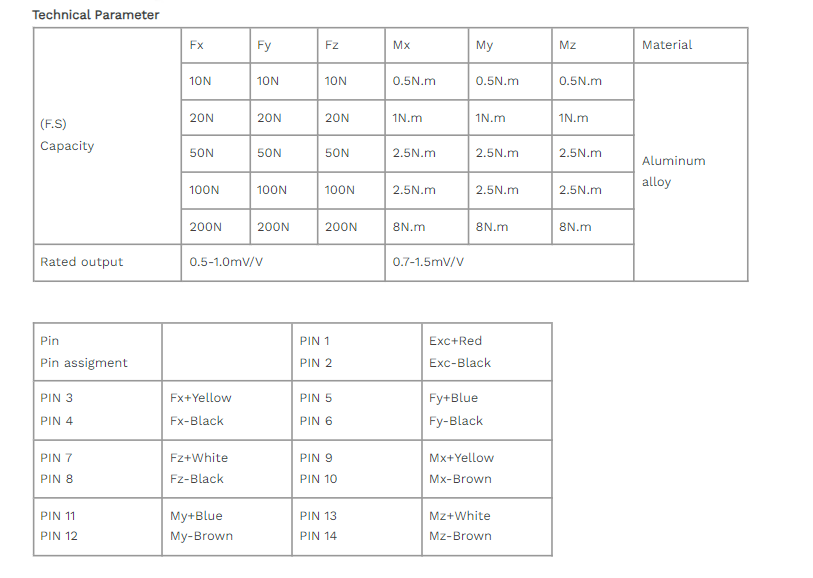 XJCSENSOR X-6A-D40-H18-A 6 Aixs Force Sensor (10N~200N) | EMIN.COM.LA