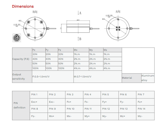 XJCSENSOR X-6A-D65-H24 6 Axis Force/torque Sensor (20N~100N) | EMIN.COM.LA