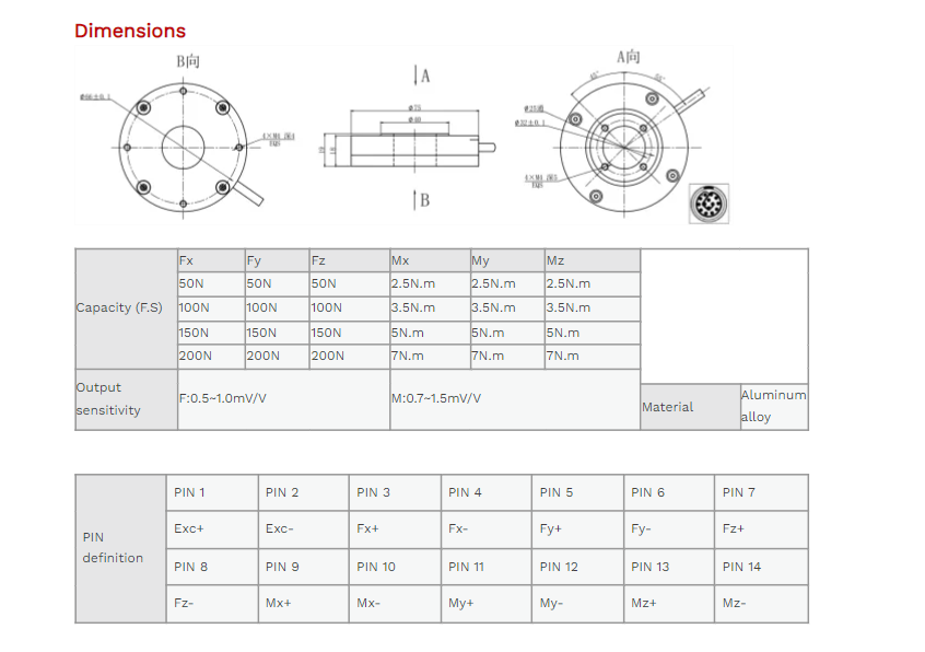 XJCSENSOR X-6A-D75-H19-A 6 Axis Force/torque Sensor (50N~100N) | EMIN.COM.LA