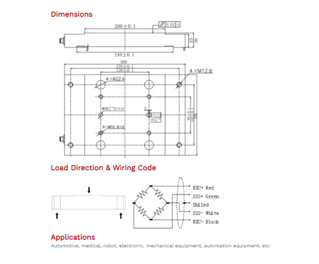 Cable Connection: Ex+: Red; Ex-: Black; Sig+: Green; Sig-: White
