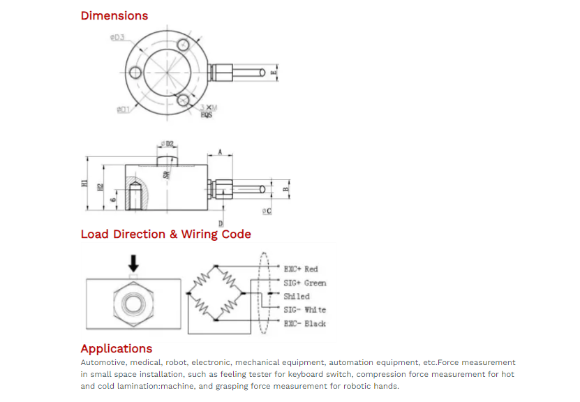 Cable Connection: Ex+: Red; Ex-: Black; Sig+: Green; Sig-: White