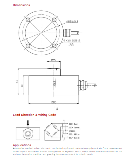 Cable Connection: Ex+: Red; Ex-: Black; Sig+: Green; Sig-: White