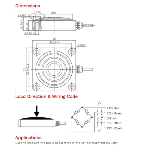 Cable Connection: Ex+: Red; Ex-: Black; Sig+: Green; Sig-: White