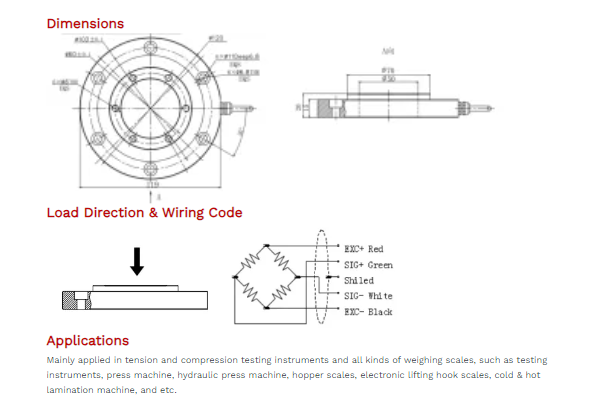 Cable Connection: Ex+: Red; Ex-: Black; Sig+: Green; Sig-: White