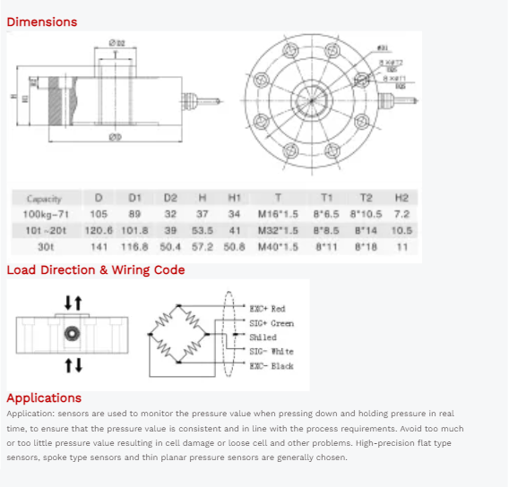 Cable Connection: Ex+: Red;Ex-: Black;Sig+: Green;Sig-: White