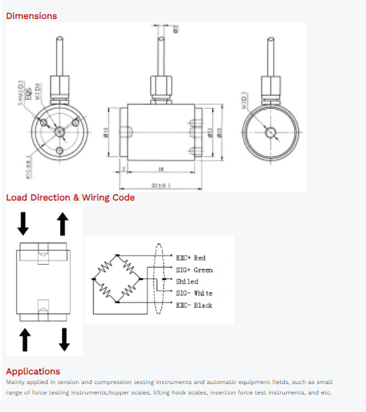 Cable Connection: Ex+: Red;Ex-: Black;Sig+: Green;Sig-: White