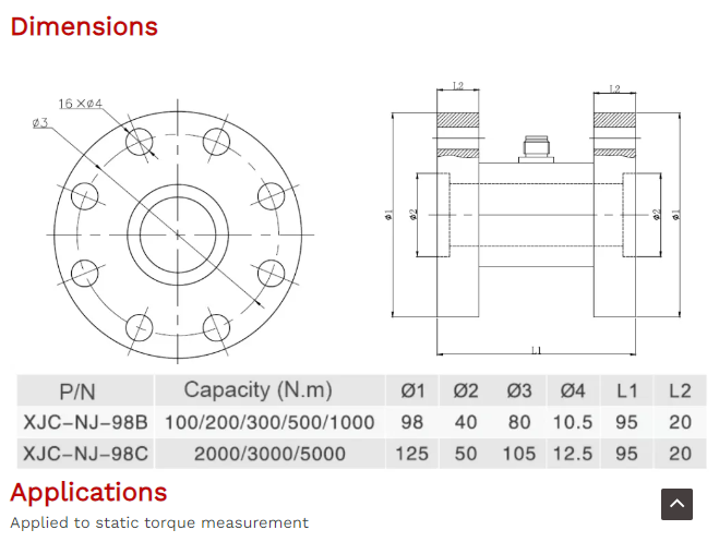 XJCSENSOR X-ST-98B Torque Load Cell (0-500N.m) | EMIN.COM.LA