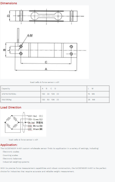 Cable Connection: Ex+: Red; Ex-: Black; Sig+: Green; Sig-: White