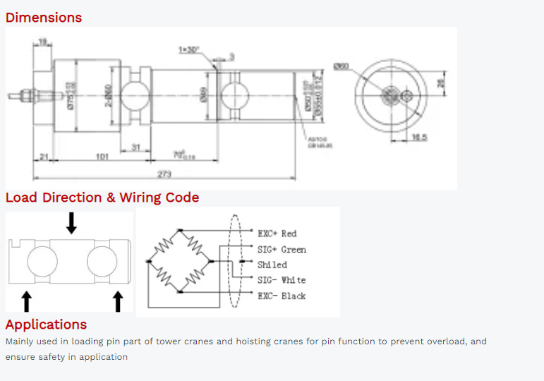 Cable Connection: Ex+: Red; Ex-: Black; Sig+: Green; Sig-: White