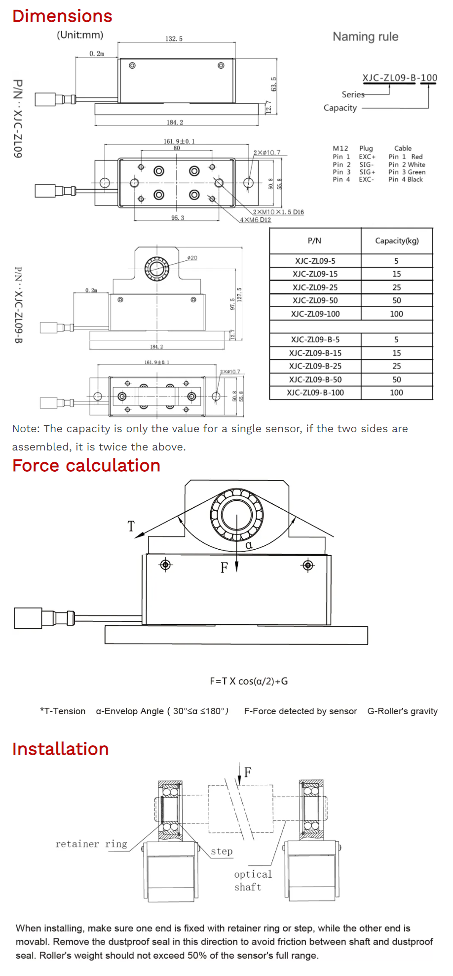 XJCSENSOR XJC-ZL09-B-15 Pillow Block Type Tension Sensor (15Kg) | EMIN.COM.LA