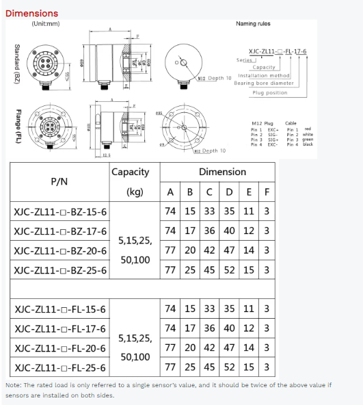 XJCSENSOR XJC-ZL11-50-FL-25-6 Flange Tension Sensor (50Kg) | EMIN.COM.LA