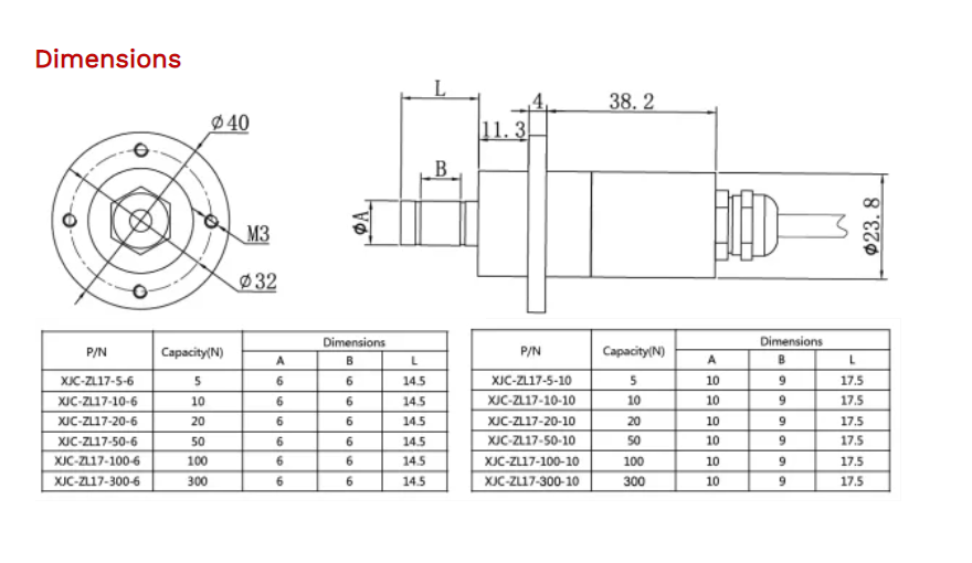 XJCSENSOR XJC-ZL17-50-10 Shaft Head Tension Sensor (50 Kg) | EMIN.COM.LA