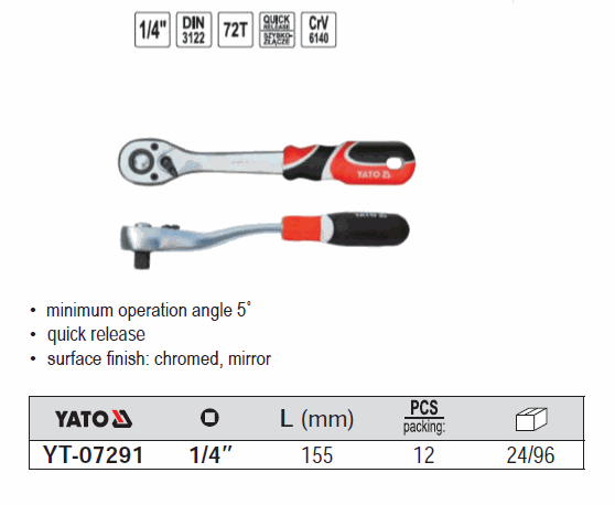 Yato YT-07291 Quick release ratchet handle 1/4" | EMIN.COM.LA