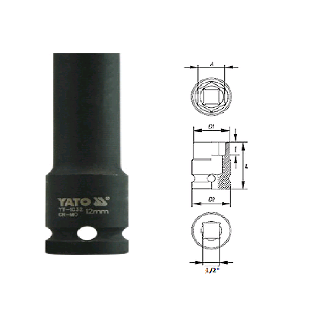Yato YT-1032 Hexagonal deep impact socket 1/2" (12mm) | EMIN.COM.LA
