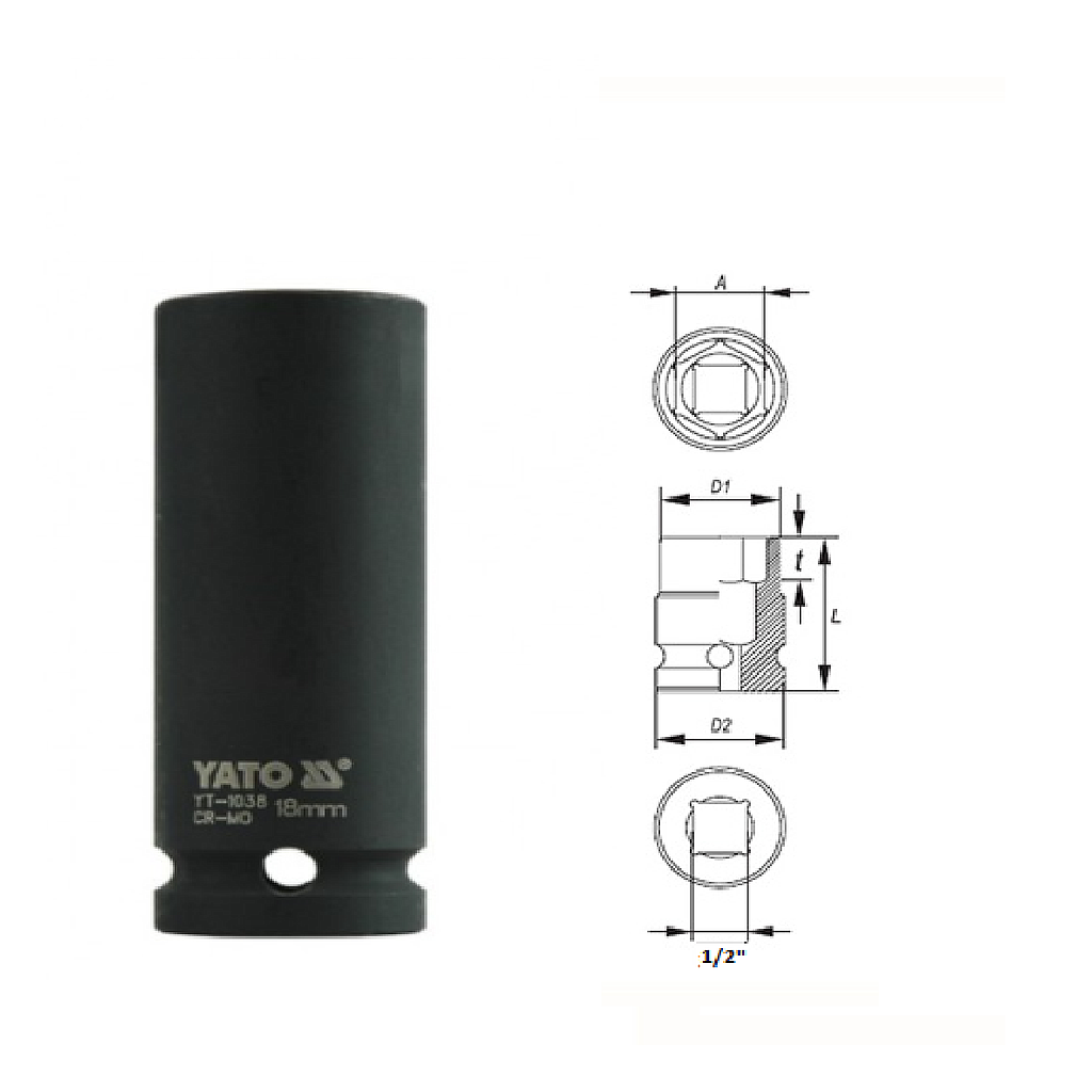 Yato YT-1038 Hexagonal deep impact socket 1/2" (18mm) | EMIN.COM.LA