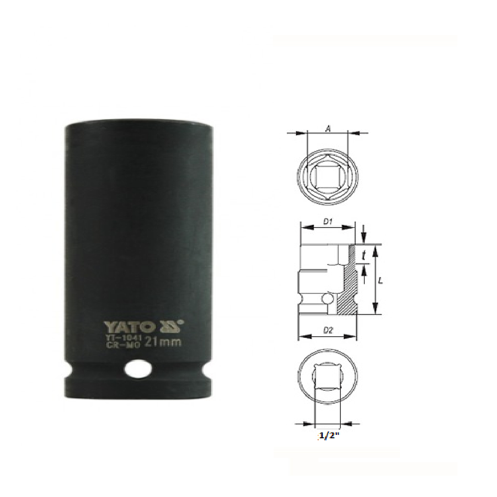 Yato YT-1041 Hexagonal deep impact socket 1/2" (21mm) | EMIN.COM.LA