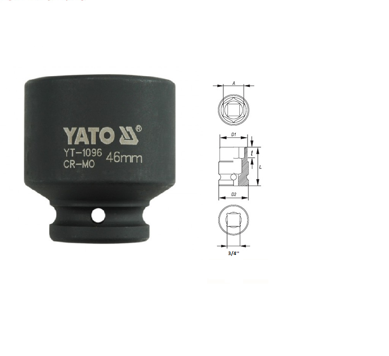 Yato YT-1096 Hexagonal impact socket 3/4" (46mm) | EMIN.COM.LA