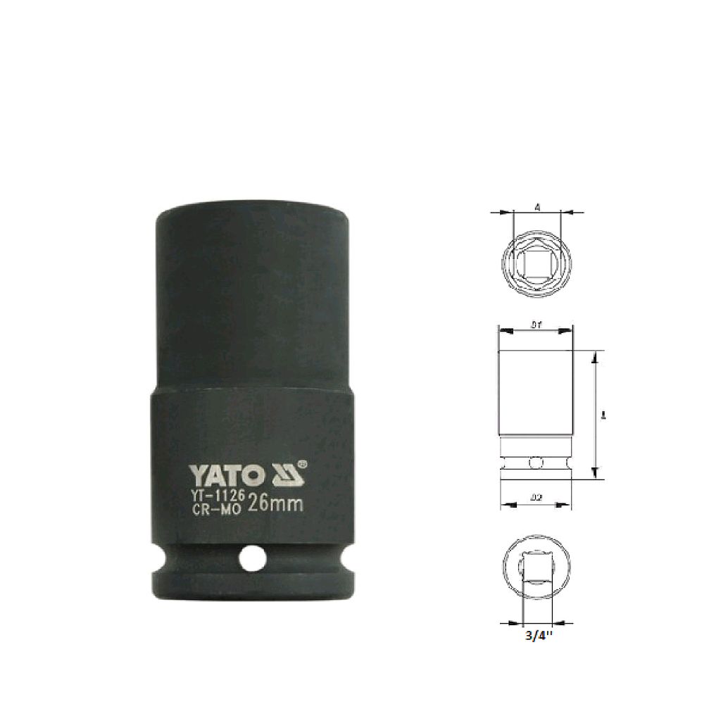 Yato YT-1126 Hexagonal deep impact socket 3/4" (26mm) | EMIN.COM.LA